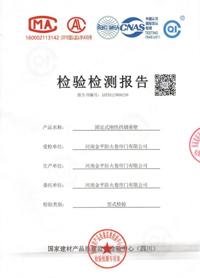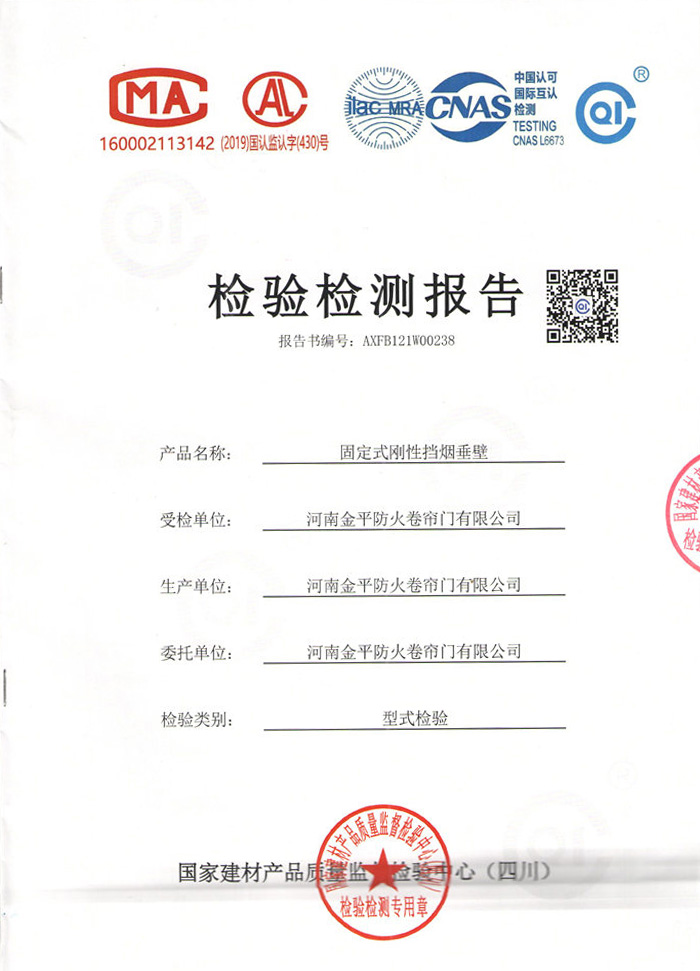 固定式鋼(gāng)性擋煙(yān)垂壁檢驗報告