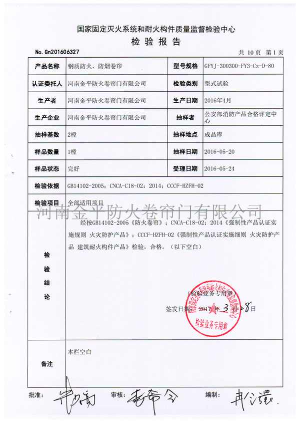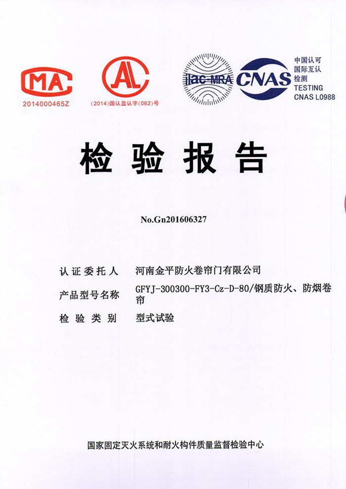 活動式柔性擋煙垂壁檢驗報(bào)告